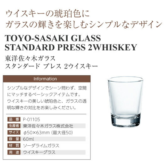 ITEM INFORMATION ウイスキーの琥珀色に ガラスの輝きを楽しむシンプルなデザイン TOYO-SASAKI GLASS STANDARD PRESS 2WHISKEY 東洋佐々木ガラス スタンダード プレス 2ウイスキー シンプルなデザインでシーン問わず、空間にマッチするベーシックアイテムです。