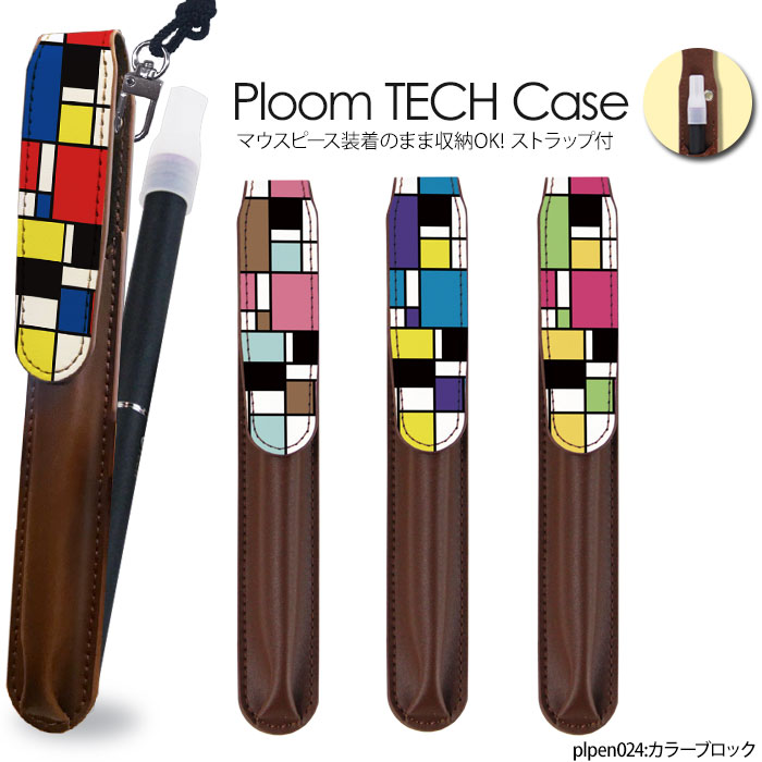 マウスピースを装着したまま収納可能 【送料無料】ネックストラップ付き プルームテック ケース ストラップ カバー ホルダー レザーケース 本革 コンパクト 本体 Ploom Tech ケース ploomtech ケース 加熱式タバコ カラーブロック デザイン plpen024