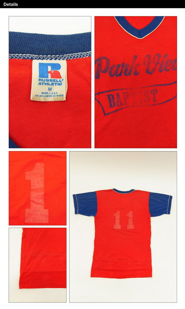 USED ラッセル リンガーネック S/S Tシャツ レッド/ブルー/Mサイズ(RUSSELL ATHLETIC) MADE IN USA 【あす楽対応】【楽ギフ_包装】【あす楽_土曜営業】【海外直輸入USED品】