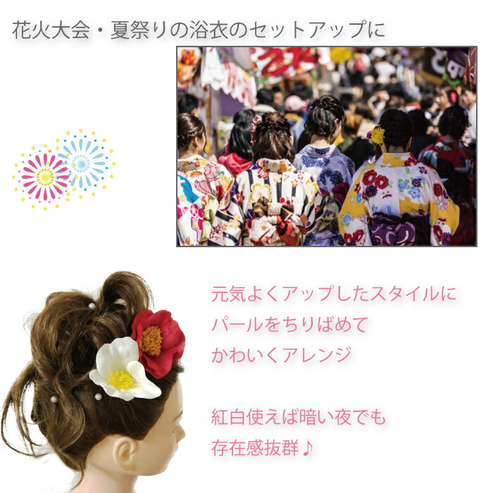 椿 赤色 白色 大きいサイズ 髪飾り 髪飾り コサージュ Uピン レディース 七五三 成人式 浴衣 卒業式 結婚式 披露宴 レトロ 振袖 袴